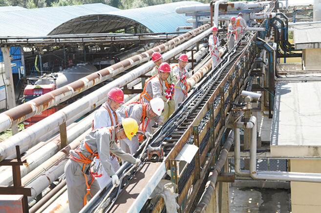 今年中秋期间,为保证丙烯腈装置尾气治理工程稳步推进,腈纶化工厂电工车间增配人员,在管架桥上铺设3×95平方毫米高压6000伏电缆3000余米。车间主任王绍波介绍说,今天有19名员工坚守岗位,目前已铺设高压6000伏电缆2400米。