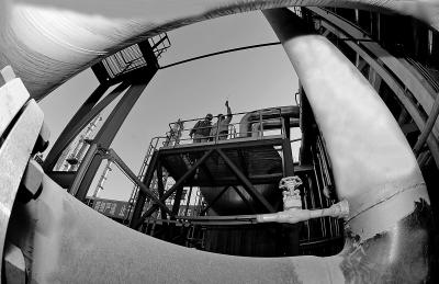 中原石化深度挖掘余热资源,延伸装置创效产业链。公司技术人员经过科研攻关将MTO装置循环水的余热改造为厂区冬季供暖的热源,项目实施后,年可生产蒸汽6.42万吨。与燃煤锅炉相比,每年可节约6399吨标准煤,减少大量二氧化碳排放,实现绿色供暖。图为岗位员工在对改造后的供热装置进行巡检