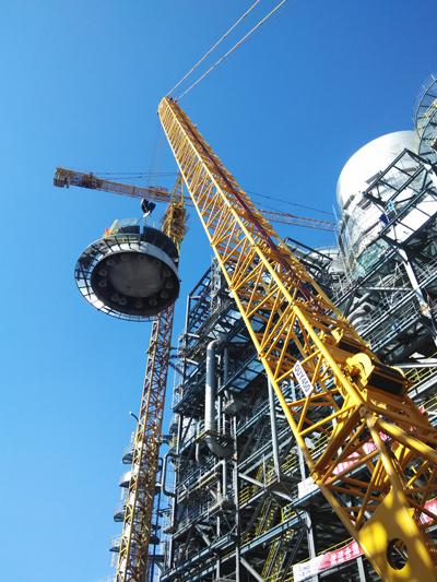 截至9月17日,十建公司中天合创项目大型设备吊装已完成420台,完成工程总量的80%,设备吊装总重量超过40000吨。