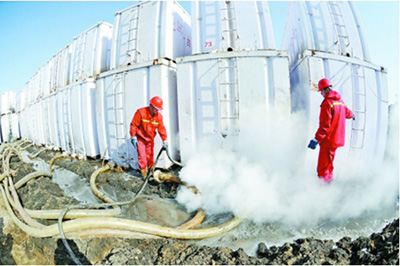 中国石油网消息3月9日,春寒料峭的嫩江之畔,几十台大型压裂设备摆开战场,开展体积压裂作业。嫩1区块是吉林油田重点开发区块,属于典型的特低渗油藏,常规压裂达不到预期效果。为保证出油效果,新木采油厂进一步改造大型体积压裂技术,采用前置滑溜水和羟丙基胍胶挟砂液单层压裂,通过应用缝网技术,使储层改造体积最大化,提高储层动用程度,从而提高单井产量。截至当日,这个区块已实现注入有效压裂液量2069立方米,支撑剂用量55立方米,达到设计要求。