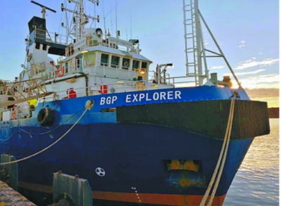 第二天上午9时,AMSA官员如约而至。检查一直持续到下午2时多,没发现任何严重问题。当检查官一句“Congratulations!”出口时,大家掩饰不住高兴与欣慰,相互微笑庆祝。5月18日傍晚6时,迎着余晖BGPEXPLORER船队驶离港口,奔赴工区。
