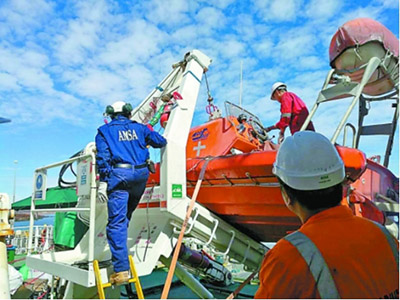 澳洲海事局人员测试救生艇。任利锋摄影报道
