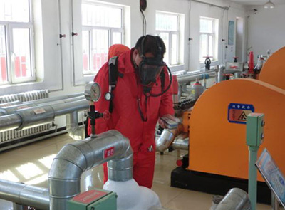 图为员工在泵房巡检。
