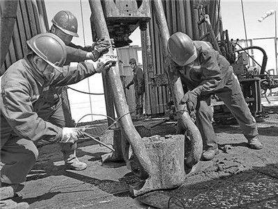 图为这个公司90001钻井队员工正在进行起下钻作业.冯红 摄影 报道