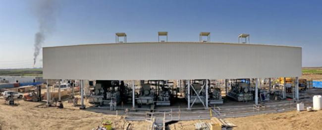 在快速首水阶段,执行“全面橇装化、产线相连、物流不过夜”策略。全站管道一个站就是一个大橇块,共5个大橇,根据伊拉克的陆运能力再拆分为59个模块,现场组装,成功应用了模块化设计、数字化施工和信息化管理,打通了设计、建造、现场施工各个环节。项目从设计源头控制了成本,进行橇装紧凑优化,超级双相钢管道长度由非橇装化设计的5462米优化到3079米,节约了大量采购费用。在成橇阶段,精准控制材料采购余量,避免材料剩到现场形成库存。