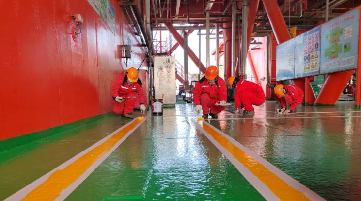 [中国石化新闻网2022-01-13]1月11日,胜利油田海洋采油厂海一采油管理区注采11区干部员工正在组织开展平台“三标”提升工作。海一管理区严格按照海上平台三标建设规范,组织岗位员工对平台采油树、甲板栏杆、流程管线进行除锈刷漆,及时整改名称不规范、喷涂漆脱落、标识不清晰等问题,切实做到设备设施运转高效、标识规范齐全、闸门灵活好用、现场整洁有序,不断夯实现场管理基础,持续提升海上平台管理水平。