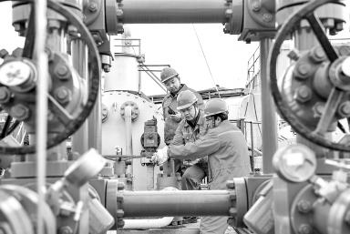 2月24日,西南石油局采气三厂须家河气藏2022年第一口新井新盛101-1井投产成功。该井所在区域具备较好的含气性。开井至今,产量、井口压力保持持续上升的趋势。图为3月1日,员工查看天然气管线流程。
