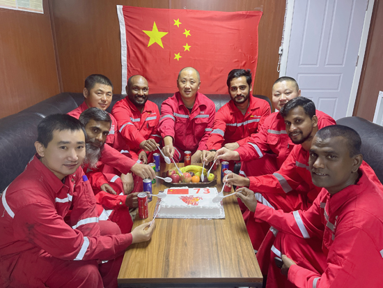 10月1日,长城钻探科威特GW75302队中国员工携手国际雇员共同庆祝佳节。 吴克 摄影报道
