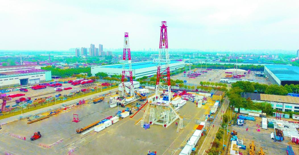 今年以来,石化机械四机公司聚焦提升关键部件自主设计能力,加快研发同升式钻机、箱叠式钻机、超级单根钻机等产品,为油气勘探开发增添装备利器。图为近日,四机公司研制的最新型8000米电动变频深井钻机完成总装调试,即将发运出厂。
