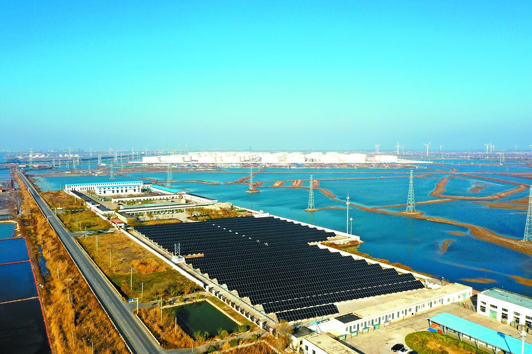 近日,胜利油田海洋采油厂供应站资产库周边区域光伏发电项目并网发电。该项目总装机容量达1.972兆瓦,是该厂最大光伏发电项目,电能主要用于服务油气生产和办公区域。图为11月14日,供应站资产库周边区域光伏发电项目。张灿摄郭长伟文