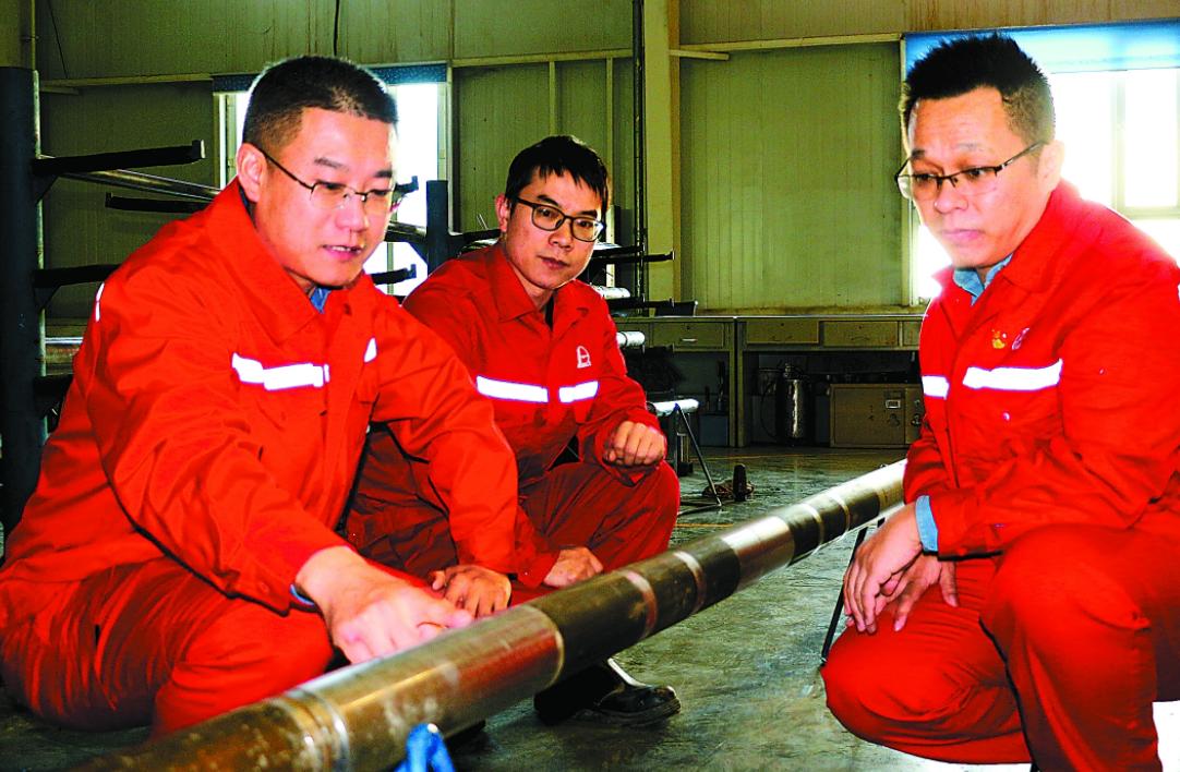 近日,经纬公司华北测控公司塔河项目部党支部和西北油田勘探开发研究院地球物理研究所党支部开展联建活动,共同探讨测井工艺技术、青工培训等内容,助推党建质量与业务水平双提升。图为两支部党员探讨测井仪器的使用要点。