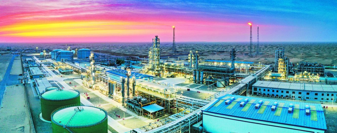 作为中国石化“深地一号”工程的枢纽,西北油田顺北油田联合站今年以来通过实施现场智能化管控、经济运行分析等措施,持续提高站库运行时效,开足马力保证满负荷运行,有效助力“深地一号”工程快速推进。截至3月20日,累计处理原油超28万吨,外销天然气2.57亿立方米。图为晨光熹微下的联合站全景。