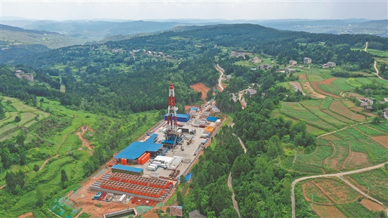我国首口以最古老沉积地层南华系为完钻层位的万米科探井——中国石油深地川科1井在四川剑阁深山鸣笛开钻。图为深地川科1井全景。金添 摄