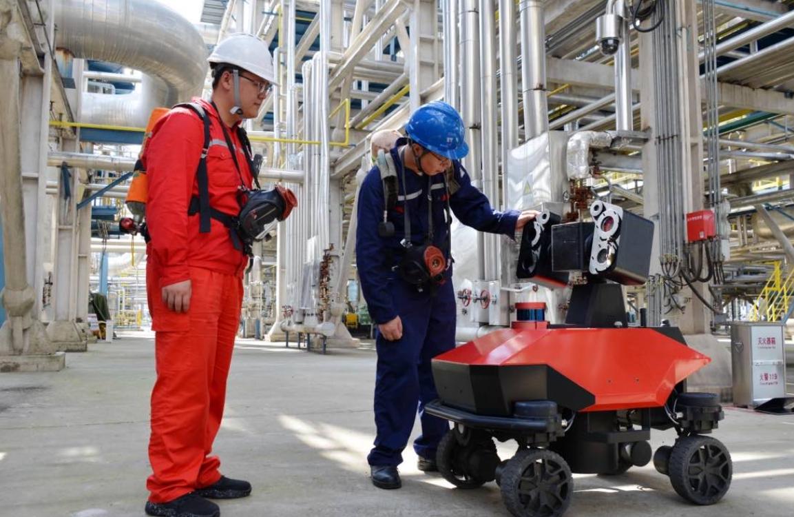 为提升智能化管理水平,7月以来,西南油气分公司元坝气田首次运用智能机器人进行巡检,通过采集图像、声音、温度等关键信息,完成巡检任务。同时,机器人发现异常情况实现自动报警,记录报警信息,确保24小时防控安全风险。操作人员可远程操控巡检路线,远程分析数据。图为8月10日员工检测机器人运行状态。