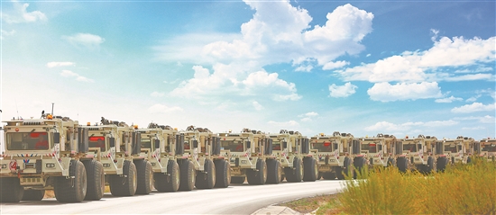 东方物探长庆物探处鄂尔多斯盆地震源阵列向工区挺进。 张振中 摄