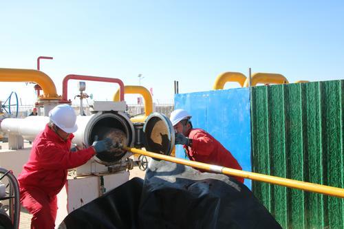 近日,华北油气分公司采气二厂首次采用“几何变形+漏磁”技术对气田外输管道进行内检测,完成东胜气田18.72公里的外输管道“在线不停产”清管作业,保障气田冬季安全生产。图为员工在集中处理站进行清管收球作业。姚冬摄杨斌文