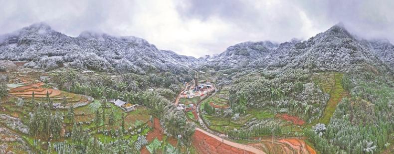 图为1月23日,第一钻井公司70027钻井队在四川宜宾冒雪施工。通讯员张雯琼摄