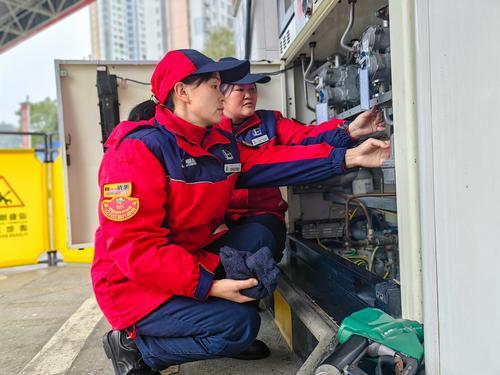 贵州贵阳石油以“百日安全无事故”行动为抓手,在130余座加能站开展安全生产隐患大排查,重点检查加油机管线、电气设备、取暖设备及油罐区附件等设备设施,即查即改,确保加能站安全生产。图为近日,城关加能站员工检查加油机管线。陈飞飞摄