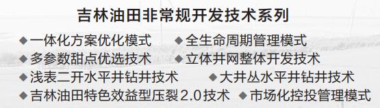 非常规资源开发是一个系统工程,需要持续贯彻地质、工程、经营管理一体化理念,形成非常规开发系列配套技术。吉林油田优化机制改革,通过“非常规资源开发公司+科研单位+生产单位”联合体的开发方式,明确管理职责,保障项目高效运行。