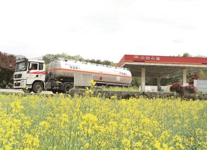 4月10日,陕西汉中洋县的万亩油菜花香气四溢,在金色的油菜花与鲜艳的宝石花交相辉映下,昆仑物流公司配送车辆为洋县春耕保供重点加油站配送油品。昆仑物流公司与销售公司建立联动保供机制,优化生产组织,提高运行效能,全力保障春耕用油的安全配送。