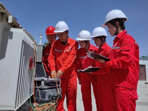 西北油田工程服务中心紧紧围绕“安全生产月”活动主题,根据班组成员的实际需求和能力水平,让骨干、技术能手变身为技术教练员,通过“一帮一”“师带徒”等多种形式,有效提升员工的综合业务水平和安全技能,为电网安全稳定运行提供支撑保障。图为6月20日,西北油田工程服务中心车豪(左二)对青年员工进行变电运行业务培训。