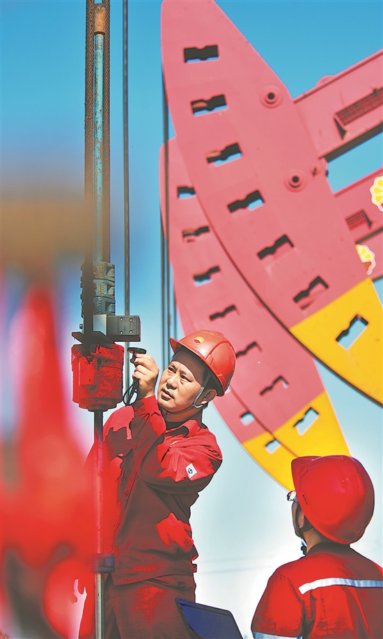 大港油田第三采油厂第六采油作业区聚焦安全“靶心”,坚持抓早抓小,严抓现场安全管理,力争从源头防范化解风险。图为作业区员工在现场检查安全隐患。蒋国霞 摄