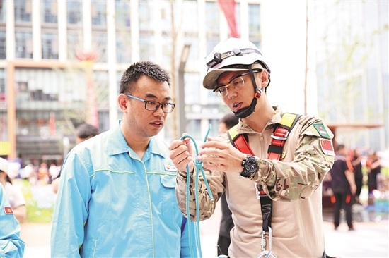 “安全生产月”活动开展以来,昆仑物流公司持续树牢安全红线意识,推动有感领导、直线责任、属地责任落实,有序开展6大类26项活动,有效促进安全生产工作再上台阶。图为应急管理人员教驾驶员安全绳打结。石宝岩 周士瑾 摄影报道