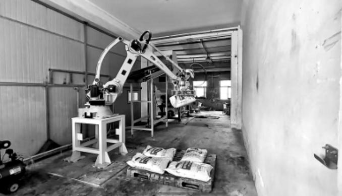 该系统由机器人、3D视觉系统、输送机、滚筒筛分机、控制系统及安全光栅等组成,具有自动化水平高、加料速度快、除尘效果好等特点。操作人员将码垛好的材料放置在指定区域,启动机器人自动加料系统,系统便会精准抓取料袋放置在传输机上,传输机再将物料传输至滚筒筛分机,对料袋进行筛分,从而完成物料拆垛、破袋、输送和残袋收集等工艺流程。