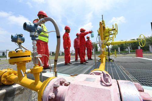图2:为保障华北地区冬季生产生活用气,中原油田白9储气库做好开采季生产准备工作,对井口流程进行注脂保养,加大巡检验漏力度,保证冬季生产安全。图为10月12日地面工程抢维修中心员工在白18井进行阀门验漏检查。赵奕松摄李建军文
