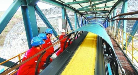 中原油田普光气田作为国内最大硫黄生产基地,今年以来,通过新增加工中国石油铁山坡气田、七里北气田高含硫天然气资源,进一步提升硫黄产量。截至12月上旬,生产硫黄超200万吨,有效助力国内化肥企业冬储备货。图为12月8日普光气田员工检查硫黄输送带运行情况。
