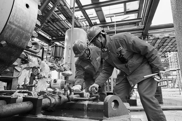循环冷却水系统启动后,员工到装置区检查设备运行情况。