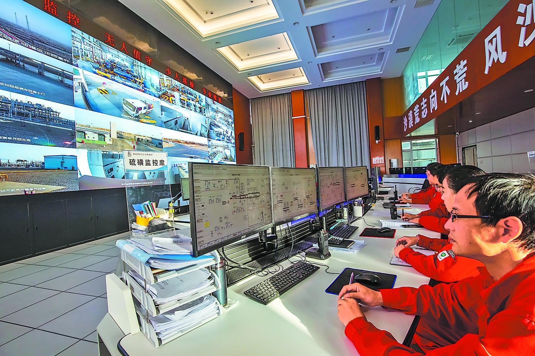 在顺北油田生产指挥中心,运行人员监控井站运行情况。 李学仁 摄