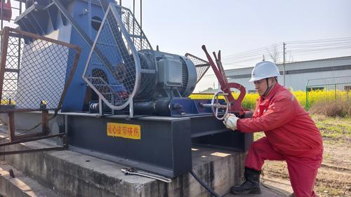 5月9日,集团公司技能大师、江苏油田首席技师厉昌峰前往真11-17井,利用自主研制的滑杠式电机调整装置,更换该井抽油机皮带。他先是松开抽油机电机底座的限位固定器,然后转动手轮,随后便可见电机在滑杠上轻松移动,整个过程仅需3分钟。