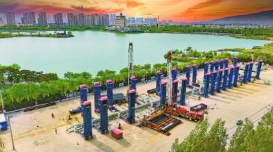 近年来,随着油区与城区空间持续融合,胜利油田创新采用井工厂模式,通过在同一个采油平台部署多口油水井,依托斜井、水平井等井型构造,构建“地表小面积集约利用、地下大网格高效开发”立体开发体系,提升油田开发效能,为油区城区协调发展提供了可复制的方案。图为近日该油田滨南采油厂白鹭湖井工厂与城区和谐交融的画卷。