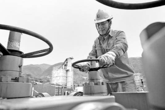 华东油气分公司统筹推进油气勘探生产组织,高效落实产能建设部署,上半年累计生产油气当量153.87万吨,同比增长5%,超额完成油气生产任务。图为7月2日员工在常压页岩气井真页5-1HF井调节生产闸门。