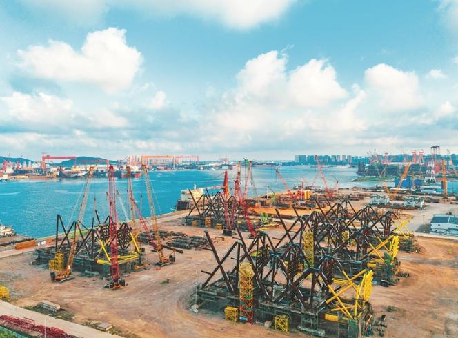 8月23日,清晨的薄雾尚未散尽,青岛海西湾的中油海工建造基地已是一派火热景象。焊花飞溅、机器轰鸣,施工人员正在高温高湿的环境中紧锣密鼓地搭建钢结构。