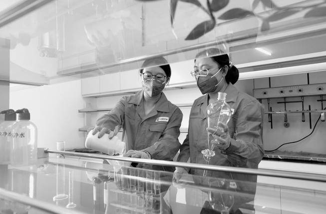 图为员工正在进行回注水化验。