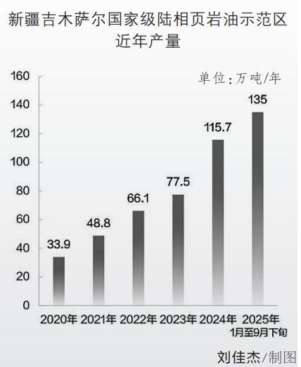 截至目前,新疆吉木萨尔国家级陆相页岩油示范区钻井周期从开发初期的141天,缩短至84.1天,再缩短至36.1天,直至目前的25天。钻井周期的缩短推动页岩油产量实现跨越,今年年初以来,示范区产量已超135万吨。