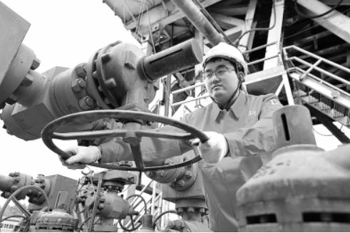 今年以来,西南石油工程公司重庆钻井分公司以攻坚创效行动为抓手,以奋发有为的状态,跑出钻井生产加速度。截至目前,该公司国内外累计钻井进尺44.51万米,创历史同期新高。图为近日该公司70218井队技术人员在资页19井检查节流管汇闸阀。