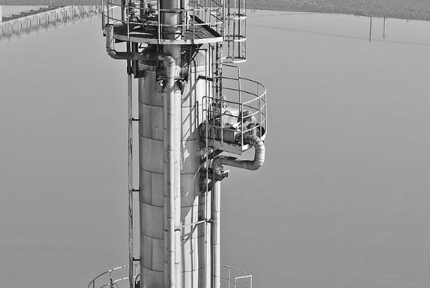 图为冀东油田员工在再生塔上更换老化保温材料。