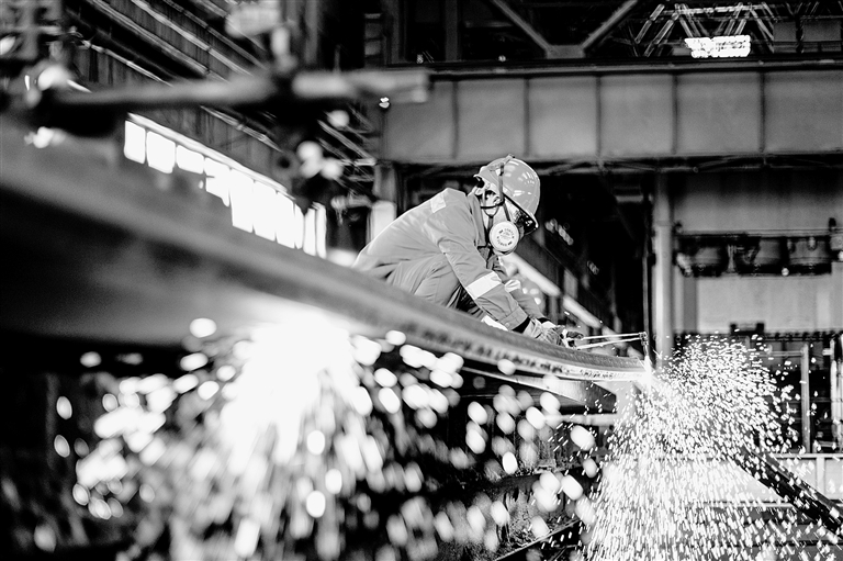 员工进行钢板下料作业。