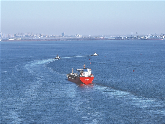 图为冀东油田原油外销船顺利启航。