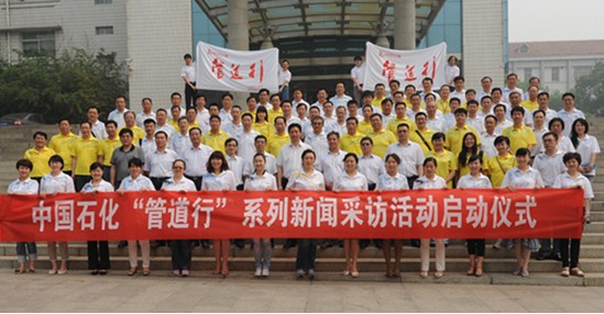 参加中国石化"管道行"系列新闻采访活动启动仪式的所有人员集体合影留念。