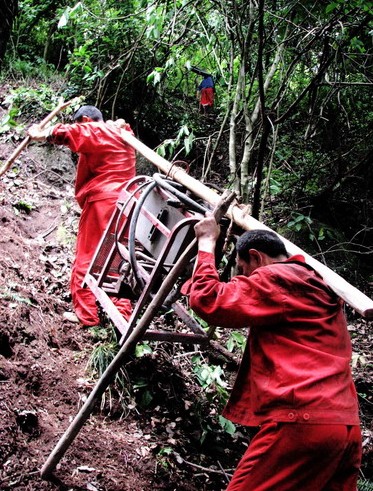 川庆物探公司物探201队施工人员正在进行设备搬迁。( 唐波 摄)