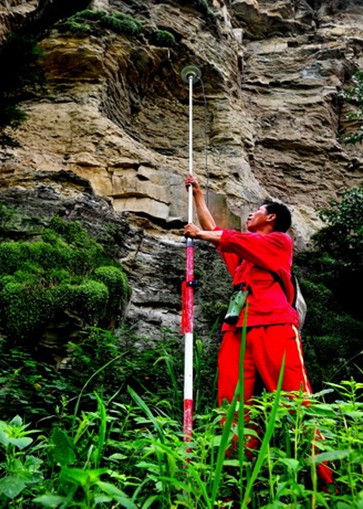 员工在进行GPS定位测量。(陈文举摄)