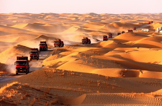 向沙漠腹地挺进的酸化压裂队伍。(赵炳春樊晶摄)