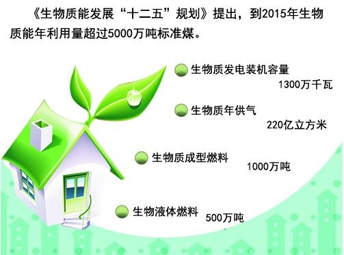 2012年12月28日,国家能源局发布了《生物质能发展“十二五”规划》,提出到2015年生物质能年利用量超过5000万吨标准煤。北京工业大学循环经济研究院研究员程会强认为,此次规划为我国生物质能产业设计好了政策框架。但一如其他新能源形式,发展生物质能一定要因地制宜,切忌一刀切。