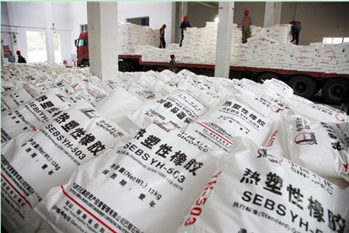 图为巴陵石化合成橡胶事业部SEBS车间新下线的巴陵牌SEBS成品在装车待运。