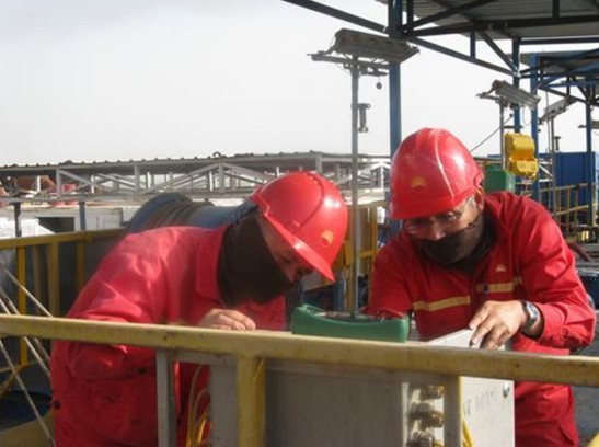 7月是伊拉克一年中日照时间最长、温度最高的月份。这里白天平均气温在50摄氏度以上,最高气温甚至超过60摄氏度。7月10日,承担伊拉克项目HF55-N055井的渤海钻探录井二公司L10537R队员工,顶着炎炎烈日,对总线箱线路进行检修(上图),以加强设备巡检和养护力度,保证仪器设备“安、稳、长、满、优”运转。