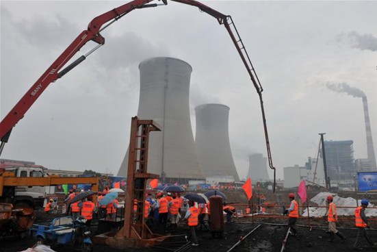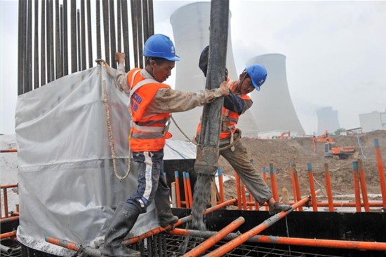 胜利油田胜电三期主厂房基础开始浇下第一方混凝土
